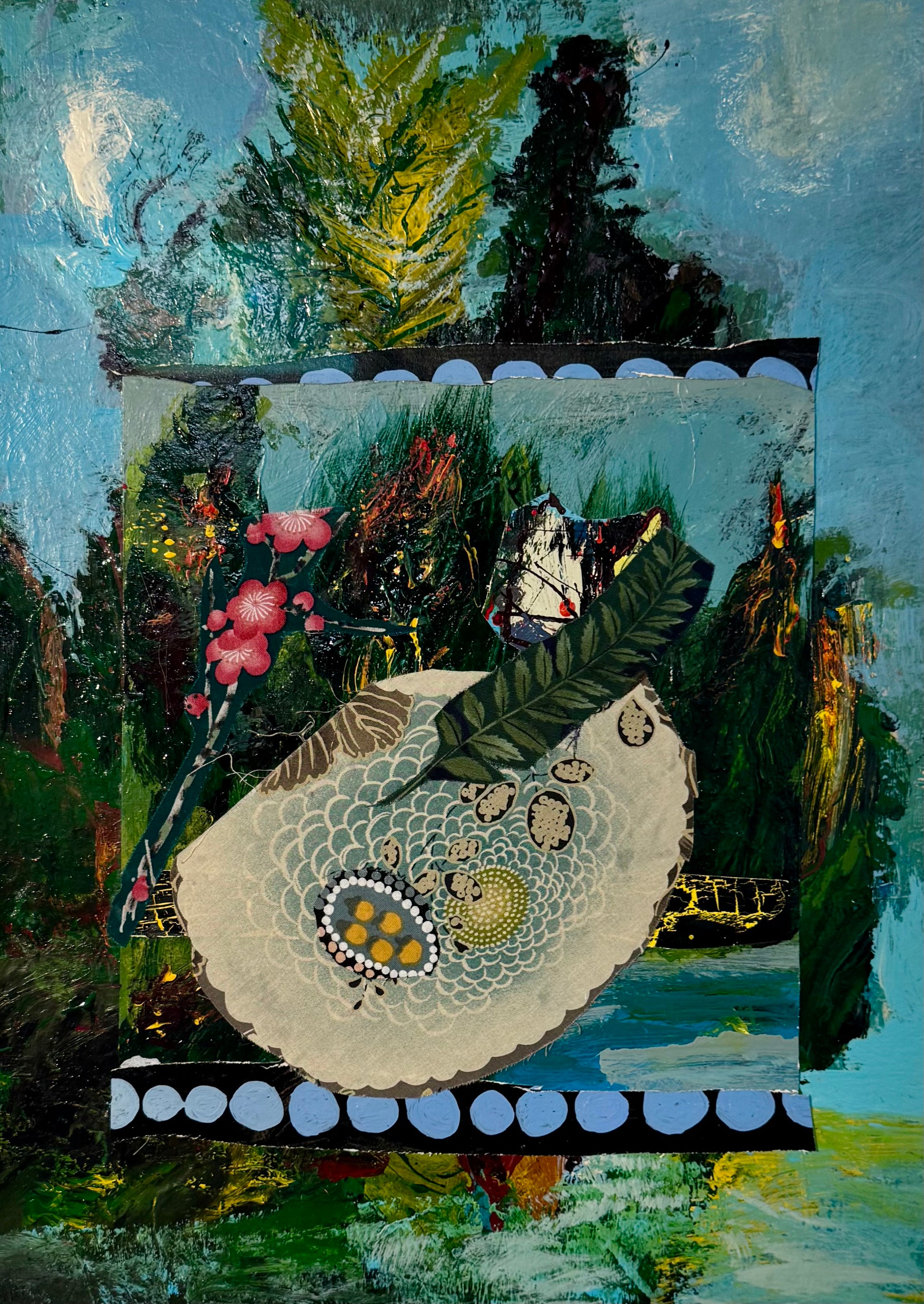Madeleine Shaw’s landscapes depictprimeval and intense environments. Fantastical and surreal elements abound,with flowers and animals appearing in unexpected places. Forms are suggested but not clearly defined. Asian influences reflect her love of Asian art.