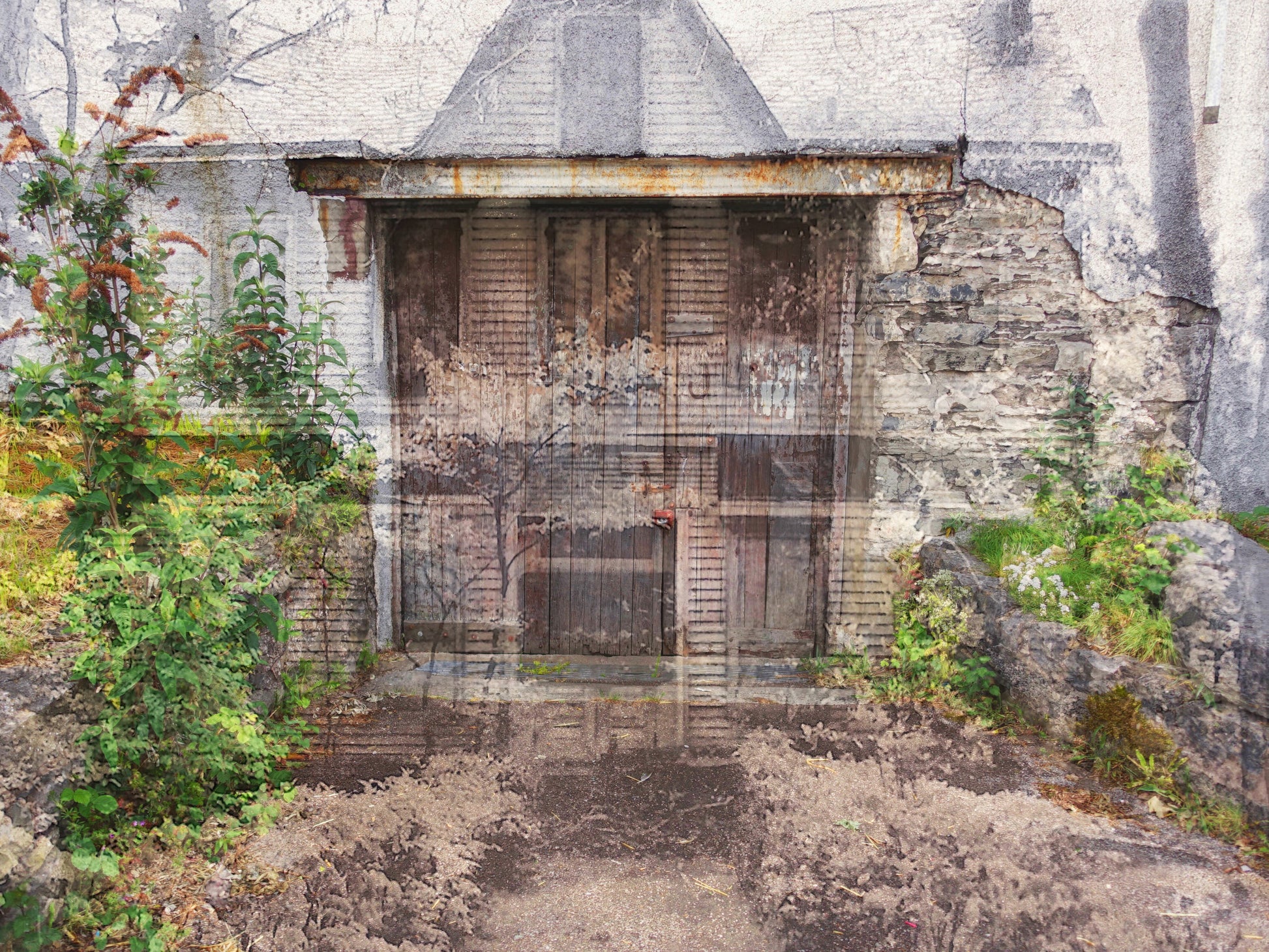 Ellen Martin asked fellow photographer Kevin Hinkle to overlay photographs from her Abandoned series with his fusion technique. "Ghost in the Yard" began as a picture of an abandoned haunted house in Aberdeen, New Jersey. Kevin was able to give his imagination free rein as no additional requirements were imposed by Ellen.
