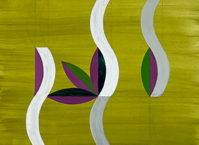 Meryl Blinder is a painter and adjunct professor of Color and Drawing at Wentworth Institute School of Architecture in Boston. Many of her paintings are inspired by the color designs and drawings she did for the late Princeton architect Michael Graves. Using wavy lines to travel across the surface and shapes as stopping off points. These wave shapes in a cluster are basic to our recognition of leaves and flowers.