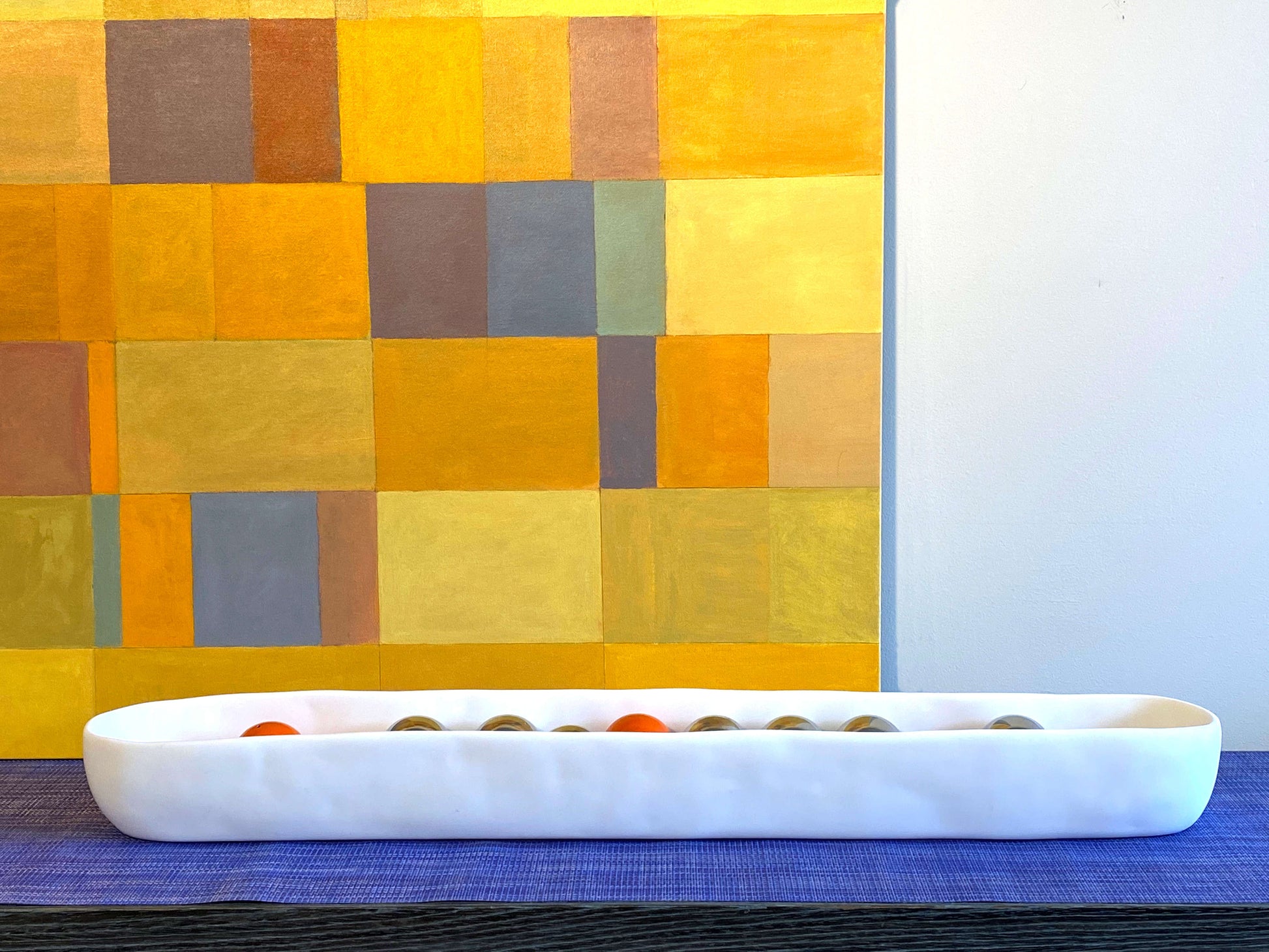 A organically formed and handmade food-safe resin trough. Dimensions are 36" x 6" x 3.5" inches.