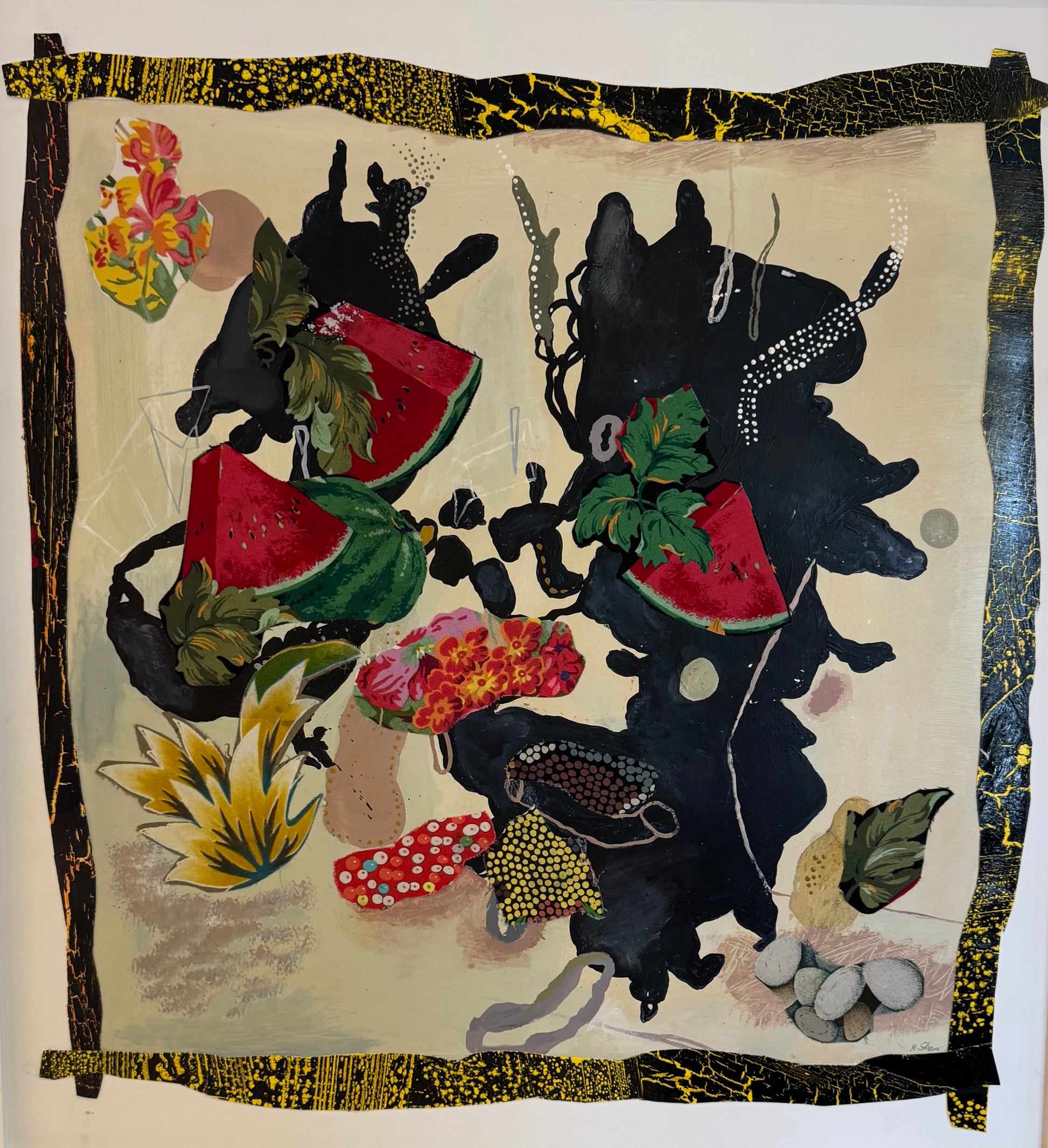 Ms. Shaw attended the High School of Music and Art in New York City and Queens College (C.U.N.Y.), where she majored in Art and Art History. After college, she pursued private art studies while living in Jerusalem and Bologna, Italy. Her works include acrylic paint, fabric, sumi ink, and appropriated images,all mounted on Bristol board.