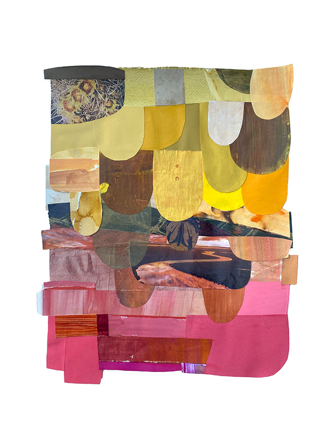 Ms. Sillen’s work features landscape-inspired torn paper arrangements. It explores themes of abstraction, space, light, color, texture, and improvisation. She gathers paper from discarded mail, books, and magazines. Her process begins with painting the papers and then exploring color through cutting and manipulation, evolving through intuition and experimentation. “I have always sought wonders in everyday life and nature; remaining open, accepting, and recognizing potential in objects (and people) that others might overlook,” says Ms. Sillen.
