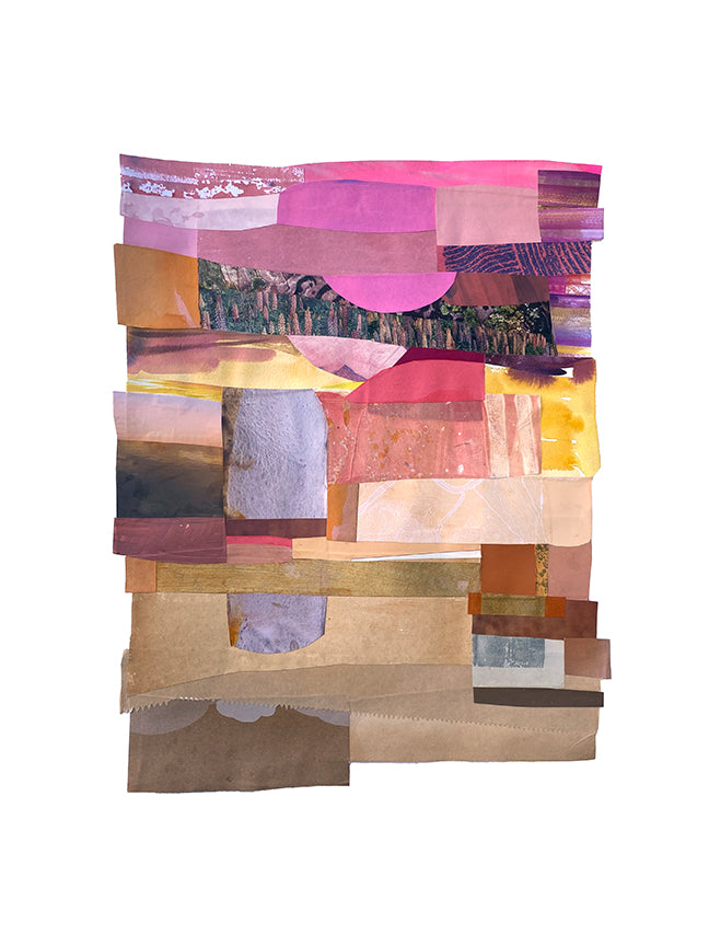 Ms. Sillen’s work features landscape-inspired torn paper arrangements. It explores themes of abstraction, space, light, color, texture, and improvisation. She gathers paper from discarded mail, books, and magazines. Her process begins with painting the papers and then exploring color through cutting and manipulation, evolving through intuition and experimentation. “I have always sought wonders in everyday life and nature; remaining open, accepting, and recognizing potential in objects (and people) that others might overlook,” says Ms. Sillen.