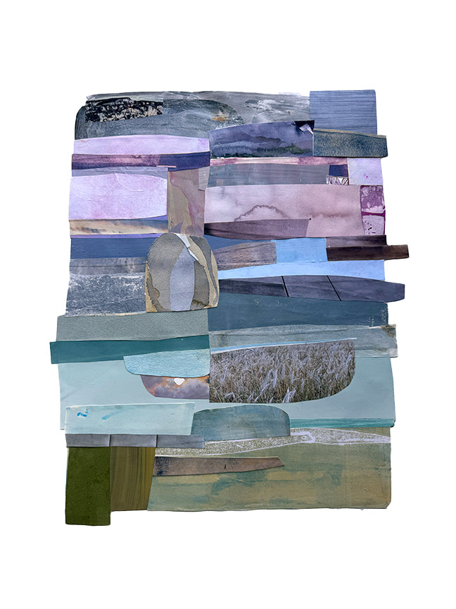 Ms. Sillen’s work features landscape-inspired torn paper arrangements. It explores themes of abstraction, space, light, color, texture, and improvisation. She gathers paper from discarded mail, books, and magazines. Her process begins with painting the papers and then exploring color through cutting and manipulation, evolving through intuition and experimentation. “I have always sought wonders in everyday life and nature; remaining open, accepting, and recognizing potential in objects (and people) that others might overlook,” says Ms. Sillen.